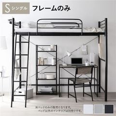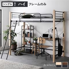 ロフトベッド 〔 シングル ハイタイプ ベッドフレームのみ ブラウン×ブラック 〕 スチール 頑丈 【同梱不可】【代引不可】[▲][TP]