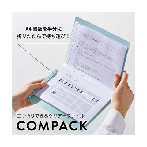 ●A4書類を二つ折りにしてコンパクトに持ち運べる10ポケット・緑色のA4クリアーファイル。