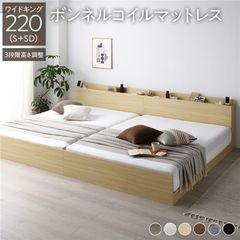 ベッド ワイドキング 240(S+D) ボンネルコイルマットレス付き ブラウン 連結 高さ調整可 棚付 コンセント付 すのこ 【同梱不可】【代引不可】[▲][TP]