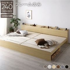 ベッド ワイドキング 200(S+S) ベッドフレームのみ ナチュラル 連結 高さ調整可 棚付 コンセント付 すのこ 【同梱不可】【代引不可】[▲][TP]