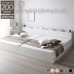 ベッド ワイドキング 200(S+S) 2層ポケットコイルマットレス付き ブラック 連結 高さ調整可 棚付 コンセント付 すのこ 【同梱不可】【代引不可】[▲][TP]