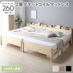 ベッド ワイドキング 260(SD+D) 国産ポケットコイルマットレス付 ナチュラル 連結 頑丈 すのこ 棚付 コンセント 高さ調整可 木製 【同梱不可】【代引不可】[▲][TP]