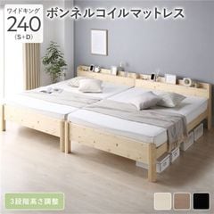 ベッド ワイドキング 200(S+S) ボンネルコイルマットレス付き ナチュラル 連結 頑丈 すのこ 棚付 コンセント 高さ調整可 木製 【同梱不可】【代引不可】[▲][TP]