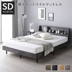 ベッド ダブル ナチュラル 2層ポケットコイルマットレス付き すのこ 棚付き 宮付き 宮棚付き コンセント付き 【同梱不可】【代引不可】[▲][TP]