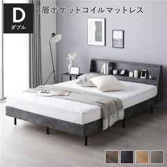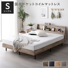 ベッド セミダブル ストーングレー 国産ポケットコイルマットレス付き すのこ 棚付き 宮付き 宮棚付き コンセント付き 【同梱不可】【代引不可】[▲][TP]