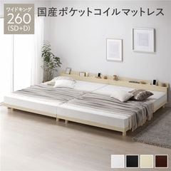 ベッド ワイドキング 280(D+D) 国産ポケットコイルマットレス付き ナチュラル 連結 高さ調整 棚付 コンセント すのこ 木製 【同梱不可】【代引不可】[▲][TP]