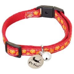 和風テイストのおしゃれなネコちゃん専用首輪。力が加わると外れるバックルを使用。反射鈴付。迷子札付。