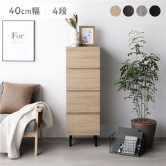 チェスト スリム 4段 幅約40cm ストーングレー 大容量 収納 スチール脚 全段スライドレール付き 異素材MIX お客様組立品 【同梱不可】【代引不可】[▲][TP]