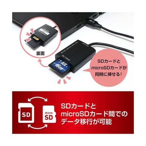 MCO SD microSDカードリーダ USB-A 70cm USR-ASD2/BK 【同梱不可】【代引不可】[▲][TP]のレビュー