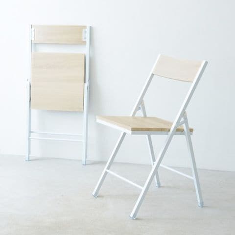 シンプルさが際立つスチール×木目の折りたたみチェア