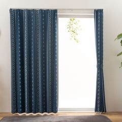 2級遮光カーテン 約幅100×丈200cm×2枚セット ネイビー 省エネ 節電 タッセル付き ウォッシャブル フォーク 【同梱不可】【代引不可】[▲][TP]