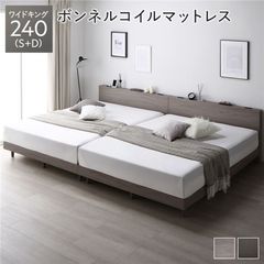 ベッド ワイドキング 200(S+S) グレージュ ボンネルコイルマットレス付き 連結 すのこ 宮付 コンセント付 お客様組立品 【同梱不可】【代引不可】[▲][TP]