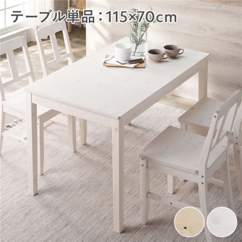 ダイニングテーブル 単品 幅115cm ホワイト 木製 天然木 パイン材 コンパクト アジャスター付き 食卓 机 お客様組立品 【同梱不可】【代引不可】[▲][TP]