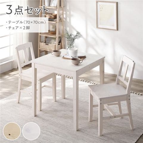 ダイニングセット 3点セット 〔 ダイニングテーブル 幅70cm ダイニングチェア 2脚 〕 ホワイト 木製 天然木 お客様組立品 インテリア 【同梱不可】【代引不可】[▲][TP]