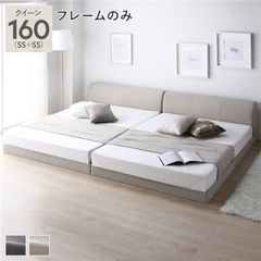 ファブリック ローベッド クイーン 160 (SS+SS) グレー ベッドフレームのみ 連結 布張り シンプル ロースタイル お客様組立品 【同梱不可】【代引不可】[▲][TP]