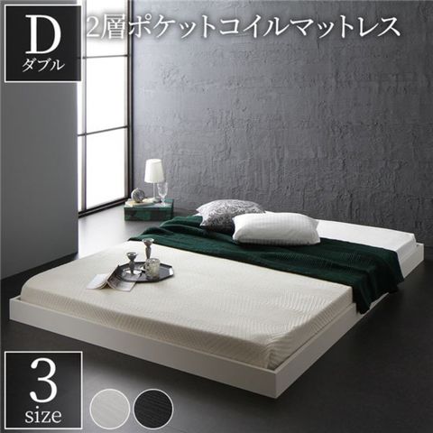 ベッド ダブル 2層ポケットコイルマットレス付き ホワイト ヘッドレス 低床 ロータイプ すのこ コンパクト ローベッド 【同梱不可】【代引不可】[▲][TP]