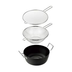 ●素材 : (天ぷら鍋22cm)本体/鉄(シリコン樹脂塗膜)・ハンドル/鉄クロムメッキ、(手付きフライヤー22cm)/18-8ステンレス(0.7mm×4メッシュ)