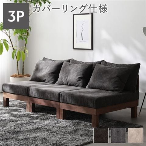 3人掛け ソファ 単品 チャコールブラウン 天然木 脚取り外し可 洗えるカバー あぐらがかけるソファ家具 お客様組立品 【同梱不可】【代引不可】[▲][TP]