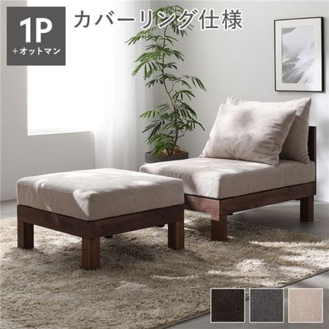 あぐらがかけるソファ セット 1人掛けソファ + オットマン アイボリー 天然木 脚取り外し可 洗えるカバー お客様組立品 インテリア 【同梱不可】【代引不可】[▲][TP]