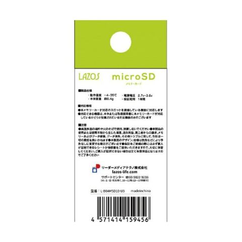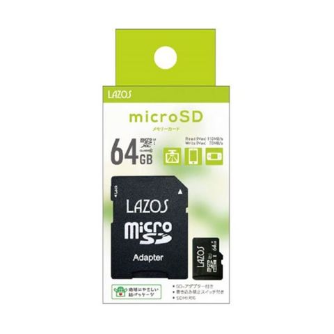 【20個セット】 Lazos microSDXCメモリーカード 64GB UHS-I U3 CLASS10 紙パッケージ L-B64MSD10-U3X20 【同梱不可】【代引不可】[▲][TP]