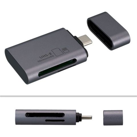 ●動画も超高速転送…Type-Cポートを搭載したPCやスマホ・タブレットで使えるカードリーダー・ライターです。超高速転送規格のUHS-II対応で、容量の大きな動画などの転送にも安心です。アルミボディのシンプルデザイン、キャップ付きコンパクトサイズで持ち運びにも最適です。
