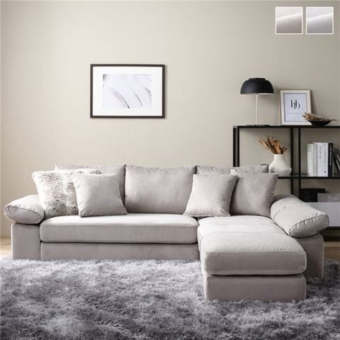 カウチソファ 〔 脚なし 樹脂パーツ1cm ファブリック ベージュ 〕ミニクッション3個付 カバーリング仕様 ベルベット調 お客様組立品 【同梱不可】【代引不可】[▲][TP]