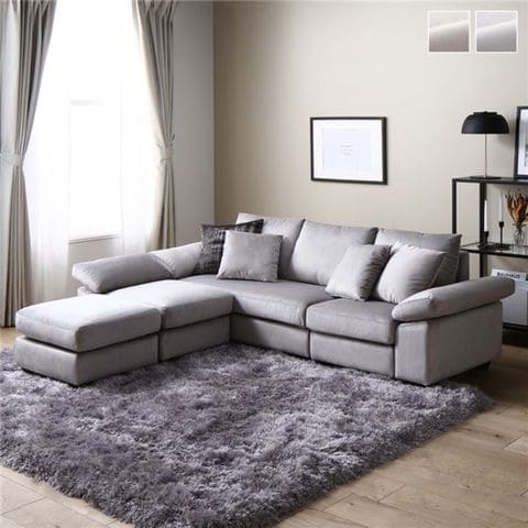 カウチソファ 〔 脚付き ロー脚6cm ファブリック グレー 〕 ミニクッション3個付き カバーリング仕様 ベルベット調 お客様組立品 【同梱不可】【代引不可】[▲][TP]