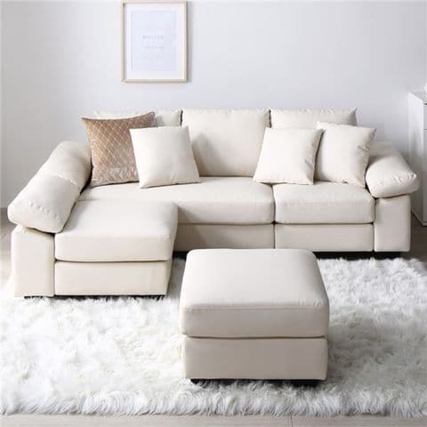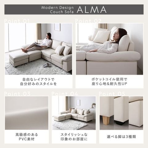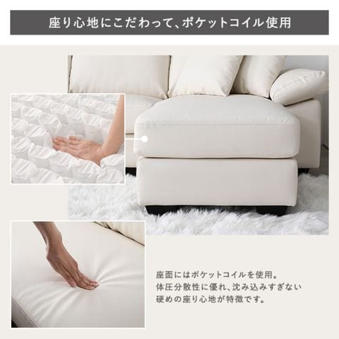 カウチソファ 〔 脚付き ロー脚6cm レザー アイボリー 〕 PVC生地 ポケットコイル ミニクッション3個付き お客様組立品 インテリア 【同梱不可】【代引不可】[▲][TP]のレビュー