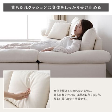 座り心地をサポートする、同生地のミニクッションが3つ付いています。