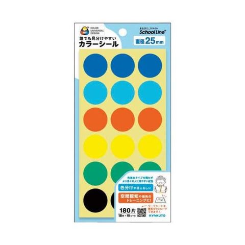 色覚のタイプを問わず、誰にでも見分けやすい8色カラーアソートの丸型シールです。「カラーユニバーサルデザイン推奨配色セット制作委員会」の色彩値を反映させました。