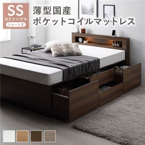 照明宮付 チェスト ベッド ショート丈セミシングル ブラウン 薄型国産ポケットコイルマットレス付 すのこベッド お客様組立品 【同梱不可】【代引不可】[▲][TP]