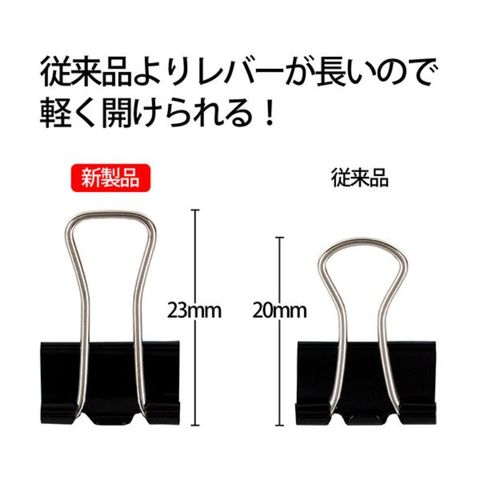 ●フラットレバーの長さを伸ばすことで、軽い力で簡単にクリップを開くことができます。