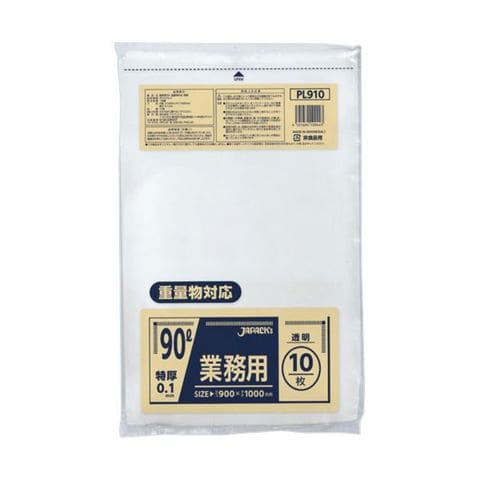 まとめ買い ジャパックス 重量物対応 特厚ポリ袋 透明 90L PL910 1パック(10枚) 【×2セット】 【同梱不可】【代引不可】[▲][TP]