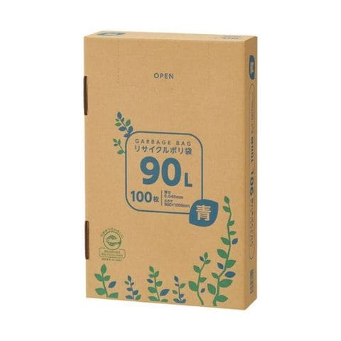 ●回収した使用済プラを90%使って作ったエコ製品。90L・青、100枚入の箱タイプです。