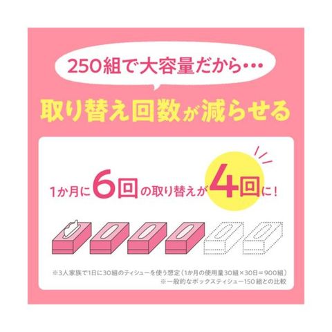 ●コンパクトな1箱に250組も入っているので、かさばらず、収納にも便利。箱の取り換え回数も減らせて、家事軽減に繋がります。