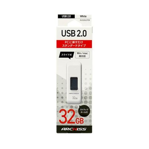 まとめ買い アーキス USB2.0 スライド式フラッシュメモリ 32GB ホワイト AS-032GU2-PSW 1個 【×2セット】 【同梱不可】【代引不可】[▲][TP]
