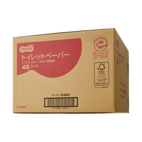 TANOSEE トイレットペーパー 個包装 シングル 芯なし 150m 1セット(144ロール:48ロール×3ケース) 【同梱不可】【代引不可】[▲][TP]