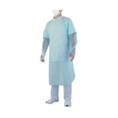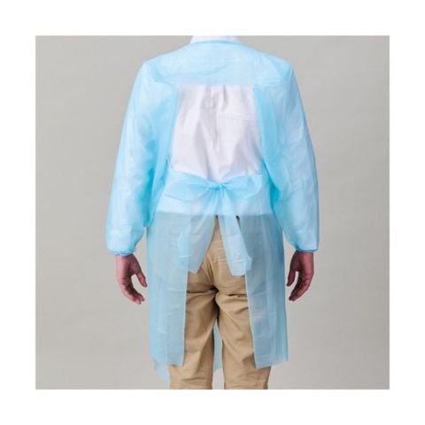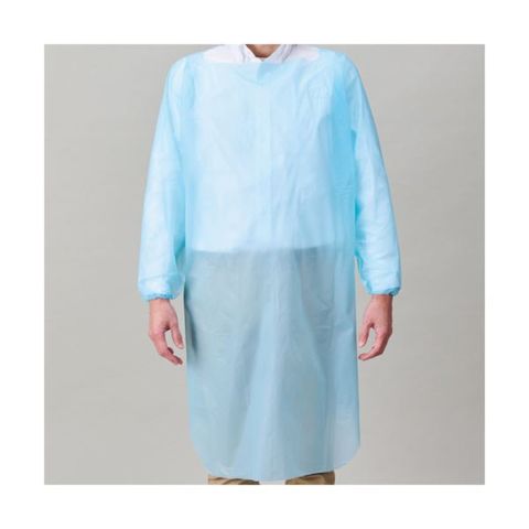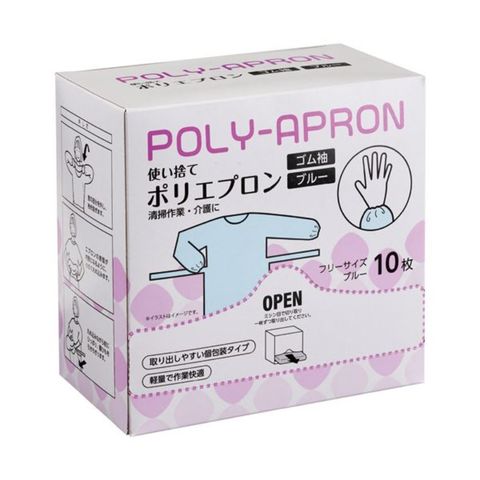 ●ゴム袖タイプの使い捨てポリエプロン。ブルー・10枚入です。