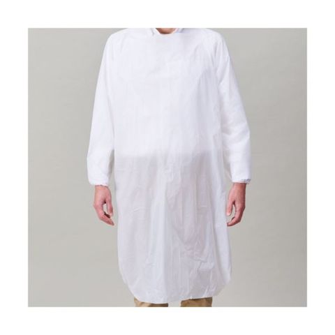 ●ゴム袖タイプの使い捨てポリエプロン。ホワイト・10枚入です。