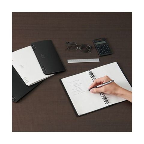 ビジネスマン向きのモノトーンカラーを採用した名刺ポケット付きタイプ。書くときにリングが手にふれない「テフレーヌ」