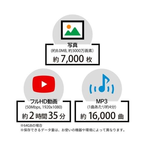備考:※ドライブレコーダー、監視カメラ、4K動画、連写撮影などには対応していません。