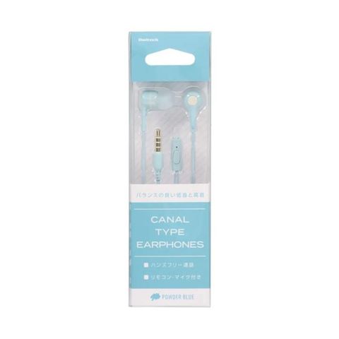 ●柔らかな印象を与えるパウダーブルーのハンズフリー対応ステレオイヤホン。淡く目立ちすぎない落ち着いた色合いが、ガジェット周りのアクセントになります。