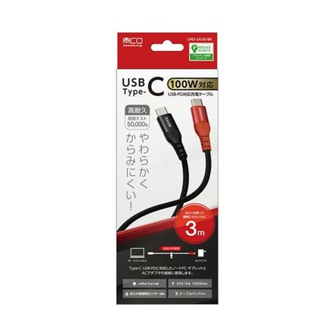 ナカバヤシ ミヨシ USB PD対応Type-Cケーブル 3m UPD-2A30/BK 1本 【同梱不可】【代引不可】[▲][TP]