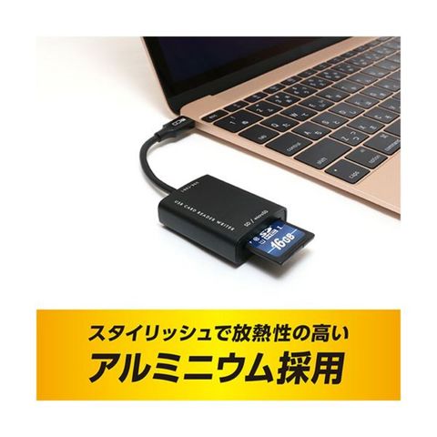●USBType-C端子搭載のPC・タブレットでSDカード・microSDカードを使用できるカードリーダ・ライタ、本体色はブラックです。