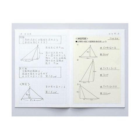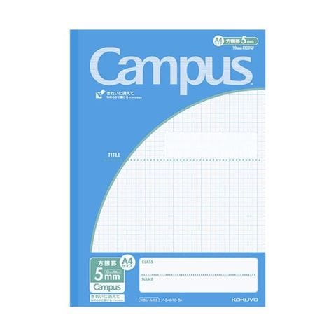●B5サイズのプリントを切らずに貼ることができ、文章をたくさん書いたり、図形を大きく書けるA4サイズ。5mm方眼罫・表紙色は青、10冊セットです。
