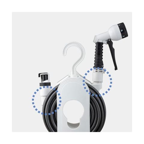 ●掛けやすい回転フックと、コンパクトにスッキリとホースを収納できます。
