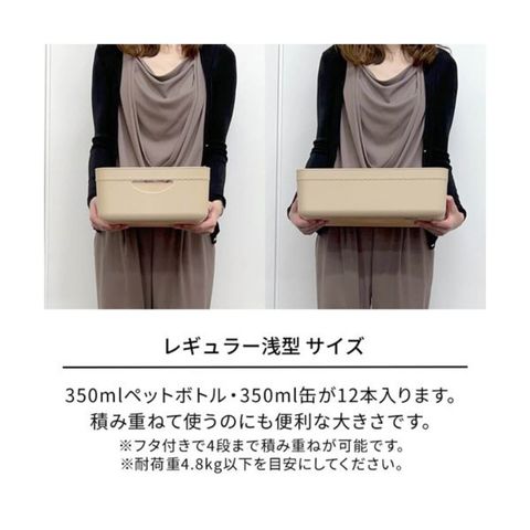 ●350mlペットボトル・350ml缶が12本入ります。積み重ねて使うのにも便利な大きさです。