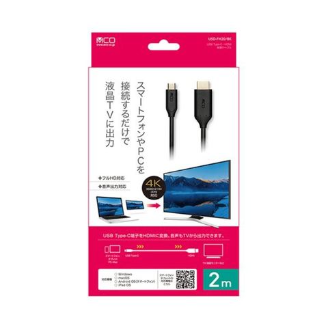 ナカバヤシ ミヨシ Type-C to HDMIケーブル 2m ブラック USD-FH20/BK 1本 【同梱不可】【代引不可】[▲][TP]