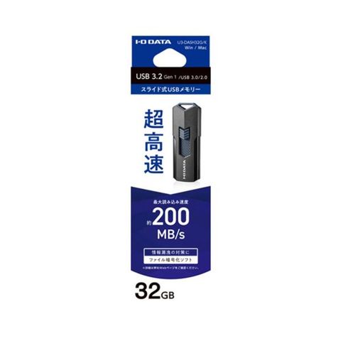 ●高性能コントローラーを採用したUSB 3.2 Gen 1(USB3.0)対応、32GB、ブラックのUSBメモリーです。
