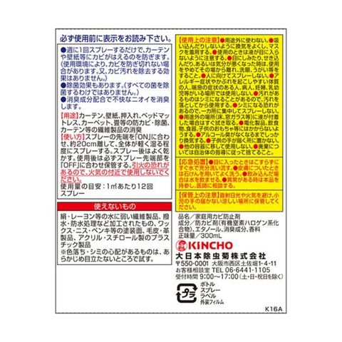 まとめ買い 大日本除蟲菊KINCHO カーテンにカビがはえなくなるスプレー 300ml 1本 【×2セット】 【同梱不可】【代引不可】[▲][TP]